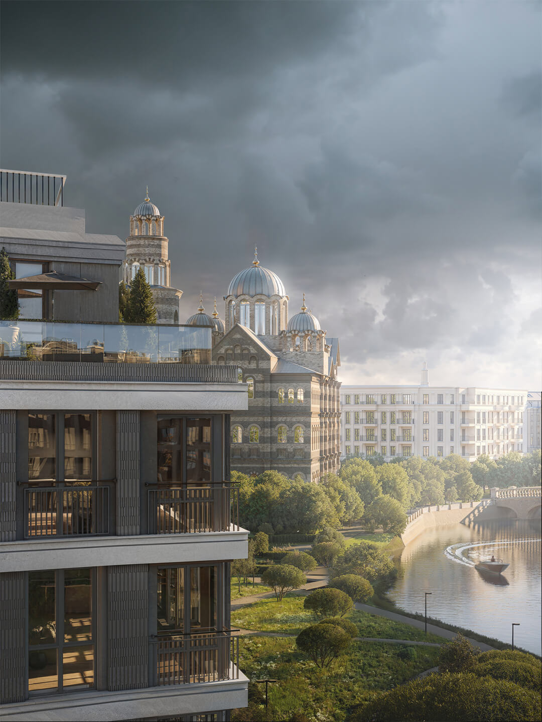 Благоустройство iD Petrogradskaya — это гармоничное сочетание уединения, природной эстетики и активной городской жизни. Приватные дворы без машин создают безопасное пространство для прогулок и детских игр. Жители смогут наслаждаться прогулками вдоль благоустроенной набережной Карповки, спортивными занятиями на свежем воздухе и отдыхом в уютных зелёных зонах. Старинная артезианская скважина, восстановленная в рамках проекта, придает территории особую атмосферу исторической преемственности и символизирует источник новой жизни для будущих резидентов.